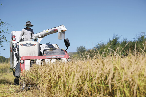金秋时节,兴安盟乌兰浩特市的水稻喜迎丰收。农户们抢抓晴好天气,加紧收割加工。(新华社 记者 贝赫)