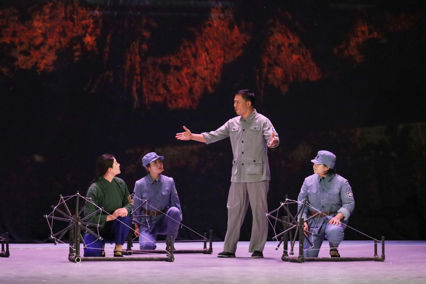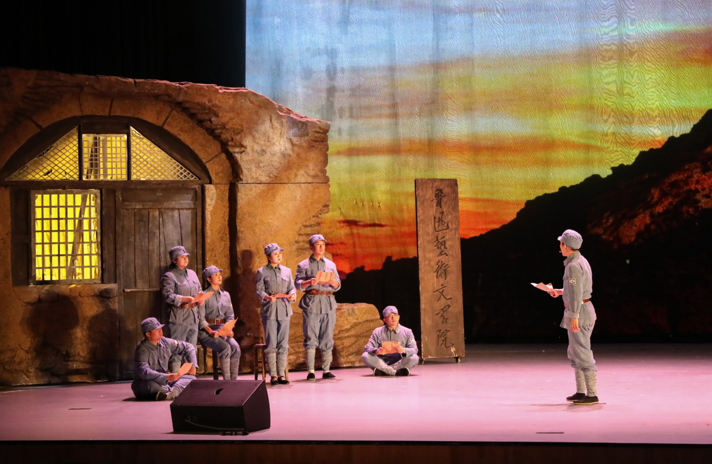 话剧《赤子长歌》以“黄浦江边”“宝塔山下”“西辽河畔”三幕剧结构,艺术再现了麦新从黄埔江畔的热血青年,成长为延安文艺战士,最终在西辽河畔为民族解放事业英勇牺牲的光辉历程。剧中不仅呈现了《大刀进行曲》创作背后的革命激情,也刻画了他深入基层、扎根群众的感人细节,成功塑造了一位有理想、有担当、有情怀的共产党员形象。