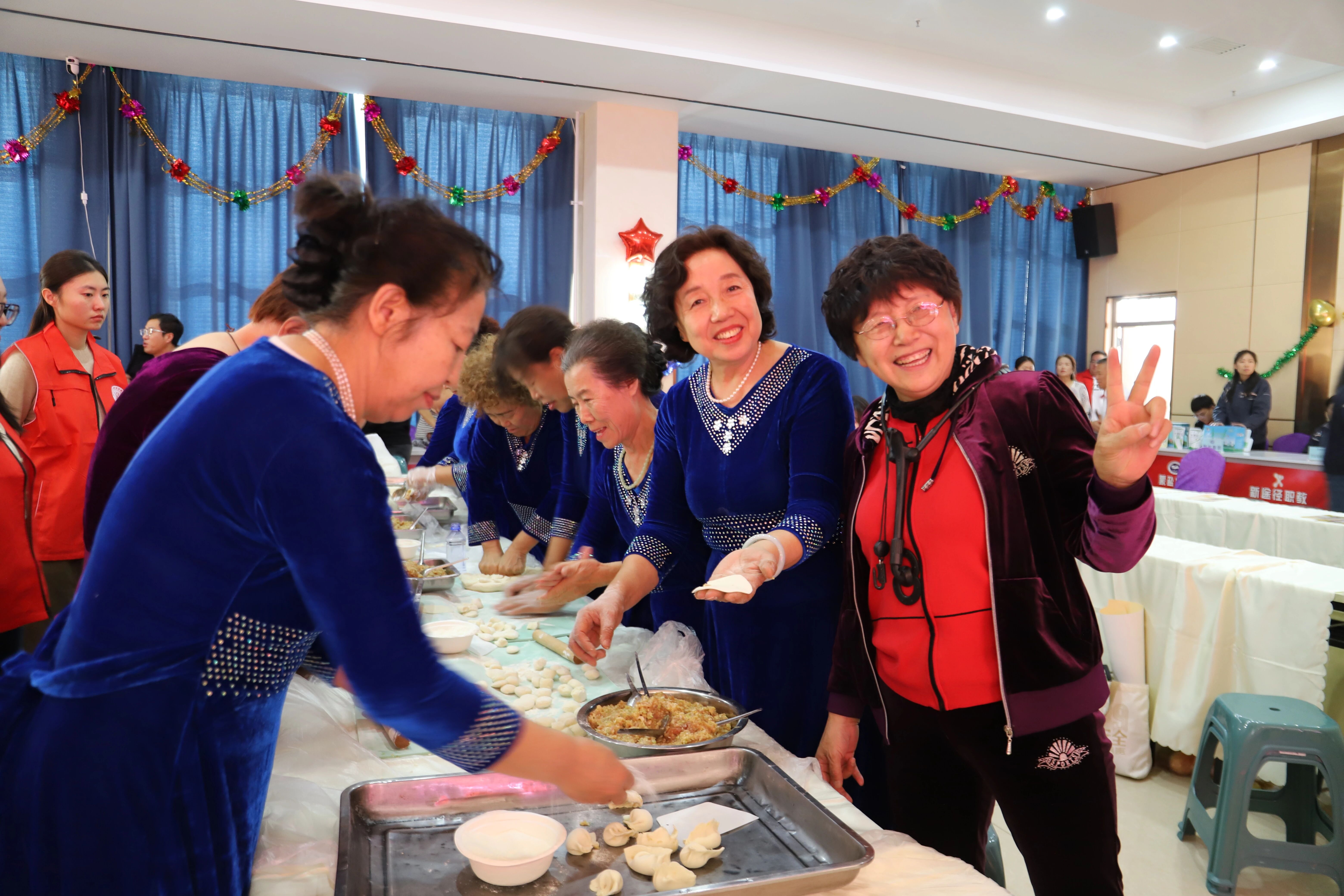 集体包饺子环节暖意融融,老人们围坐一起,揉面、擀皮、包馅,动作娴熟、配合默契,形态各异的饺子很快摆满餐盘。热气腾腾的饺子出锅后,大家围坐分享,鲜香滋味在舌尖蔓延,节日温情在席间流淌。
