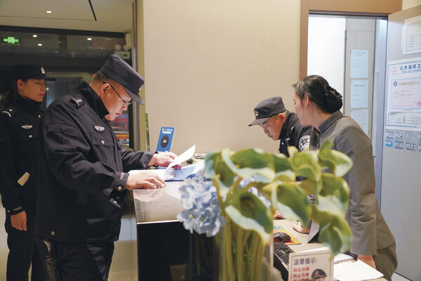 “请出示身份证登记信息。”日前,兴安盟乌兰浩特市公安局民警在某宾馆检查时,发现一名旅客未按规定进行实名登记,当场对宾馆负责人进行批评教育并依法予以处罚。