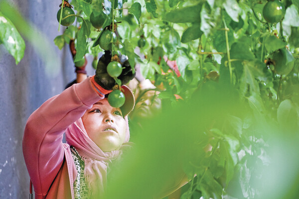 11月24日,兴安盟乌兰浩特市乌兰哈达镇高根营子嘎查村民在高标准设施农业园区大棚内管护百香果。近年来,当地整合各级乡村振兴衔接资金,巧做“农业+旅游”文章,打造五个功能区的高标准设施农业园区,聚焦高端浆果、采摘研学、寒地果蔬和高新蔬菜种子研发等,形成了特色鲜明、优势互补的产业格局,助力乡村振兴。(内蒙古日报记者 王晓博)
