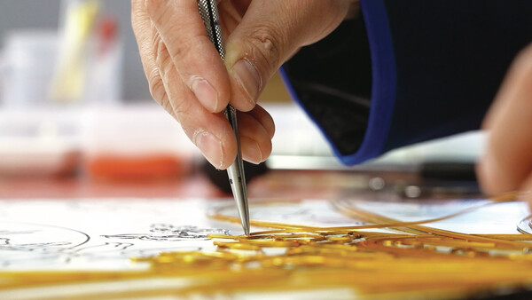 张海对景泰蓝古老技艺的守护始于对传统艺术的深刻理解与敬畏。他深耕掐丝、点蓝、烧蓝、磨光、镀金等传统工序,每一道流程都追求极致精准,纯手工制作的掐丝珐琅画质地精良,线条细腻流畅,色彩浓郁醇厚,完美展现了景泰蓝工艺的独特魅力。在作品创作中,他严格遵循景泰蓝固有的造型法则和色彩体系,将细薄金属丝塑造成精美纹样,确保作品延续着景泰蓝与生俱来的华贵气质与晶莹质感,在一掐一丝、一点一染中,守护着非遗的根脉与本真。