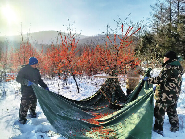 仲冬时节,兴安盟阿尔山市白狼镇寒意正浓,冰雪覆盖的大地上,一抹鲜亮的橙红格外夺目——白狼林业局种苗繁育中心苗圃里,试种的俄罗斯大果沙棘“深秋红”迎来首个稳定挂果丰收季。