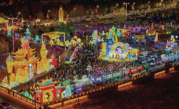 12月20日,内蒙古兴安盟科尔沁右翼前旗锦绣嘉年华新春灯会开幕,吸引众多居民和游客前来赏灯。(新华社发)