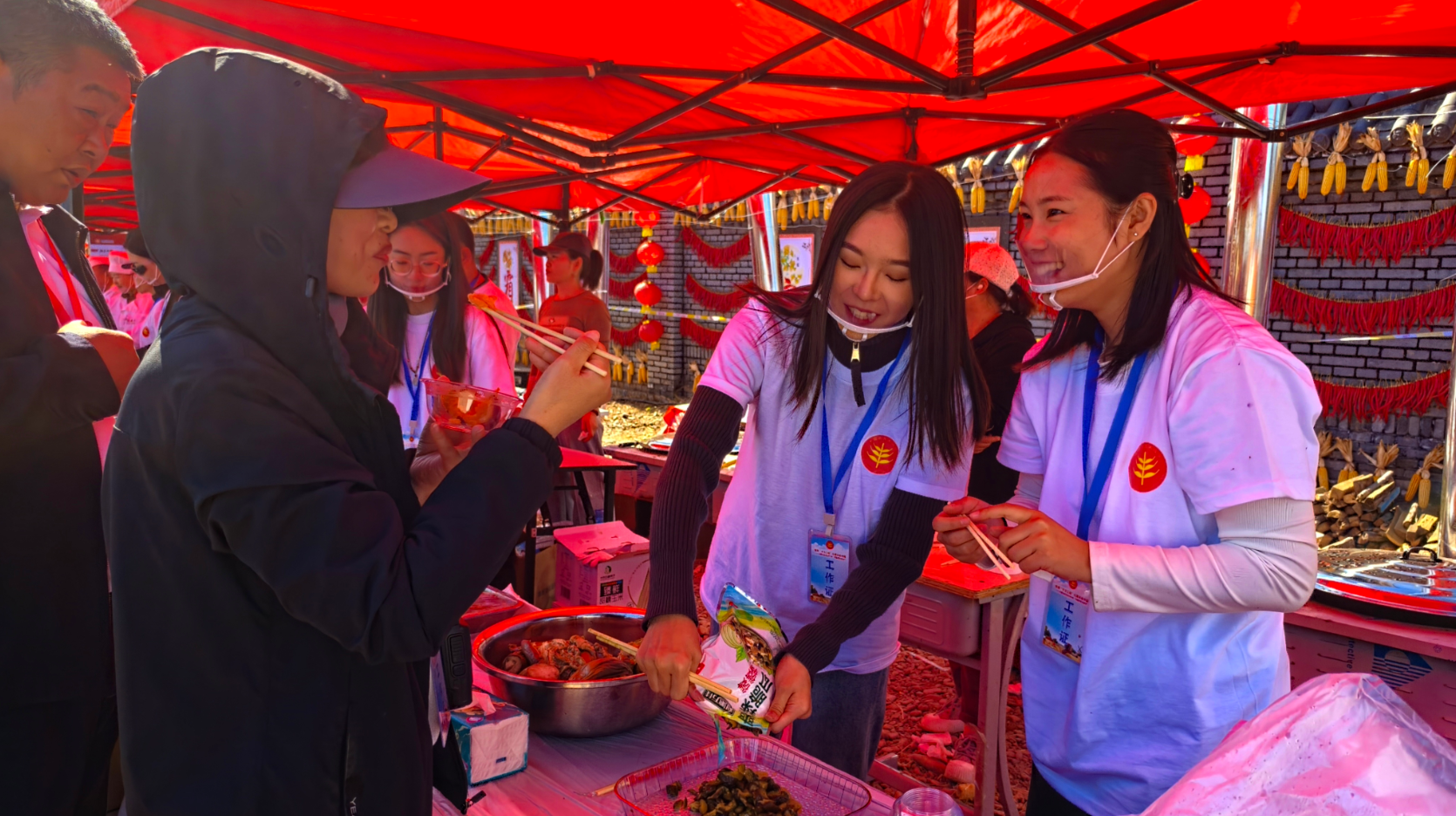 在好力保稻谷景区,稻田美食展香气四溢,炖稻田鸭、炖稻田鱼、杀猪菜、炖羊肉……每一口都是大自然的馈赠,每一口都是农民汗水的结晶。游客们品尝着美食,脸上洋溢着满足和幸福的笑容。“在这里吃的牛肉干很美味,和从前吃的不一样。”游客李秀东开心地表示,“我要为我们扎赉特旗的农牧产品点赞!”