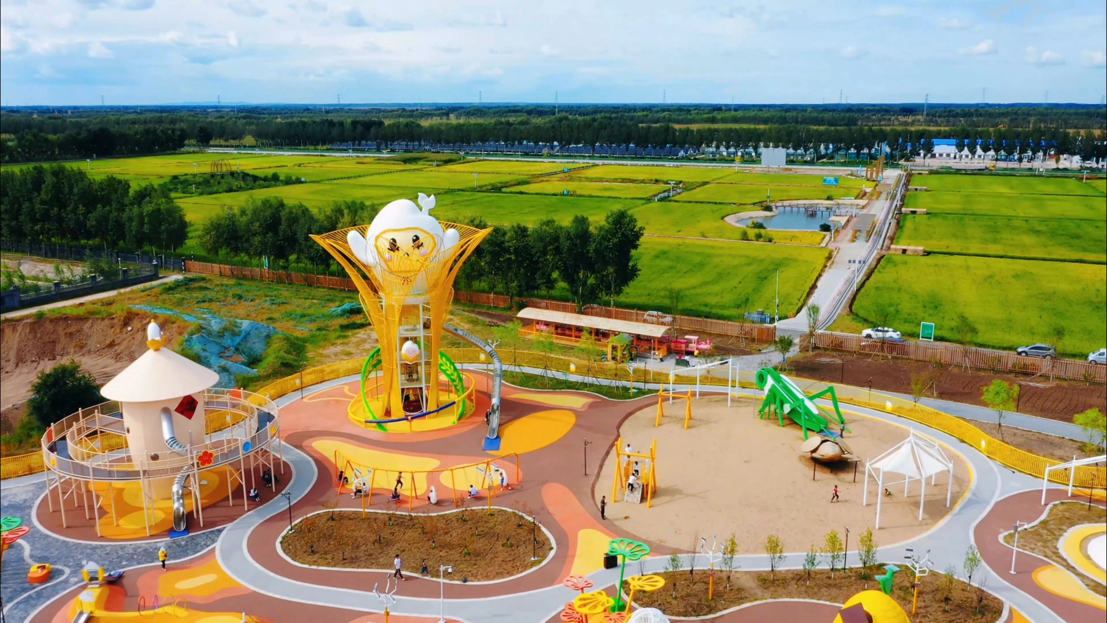 该公园总体占地面积34.35公顷,依托好力保镇的稻米产业,成功打造了“好粒宝IP”形象。这个可爱的IP形象不仅“萌化”了消费客群,还围绕其完善了可体验的游乐项目和可带走的文创商品。