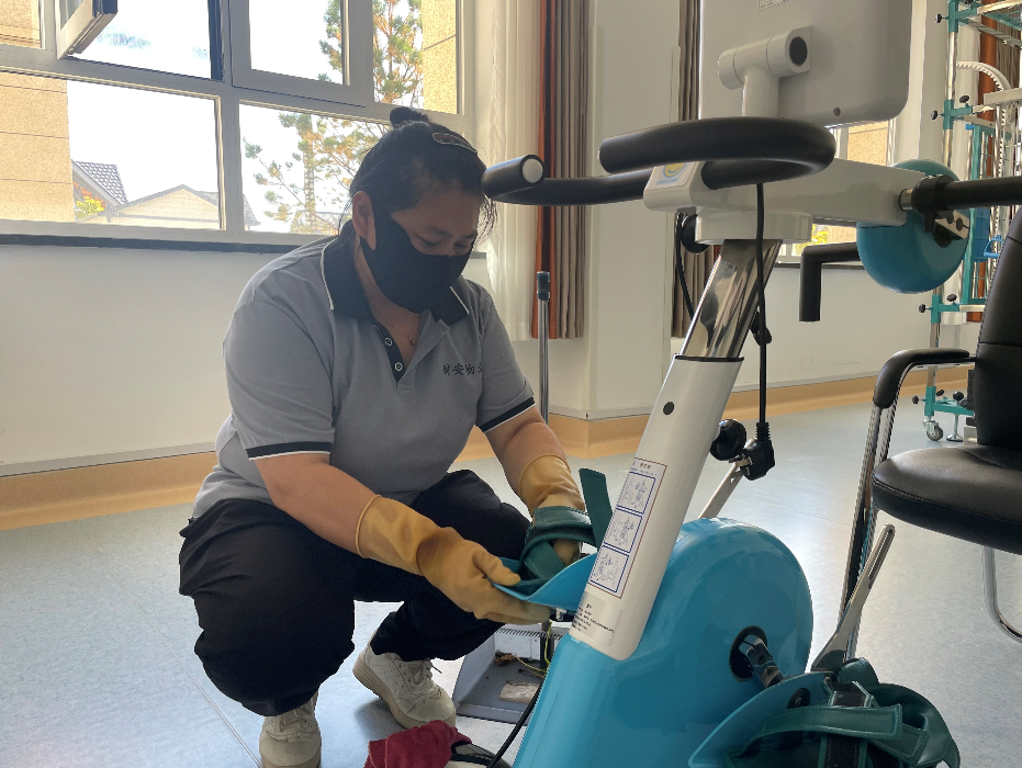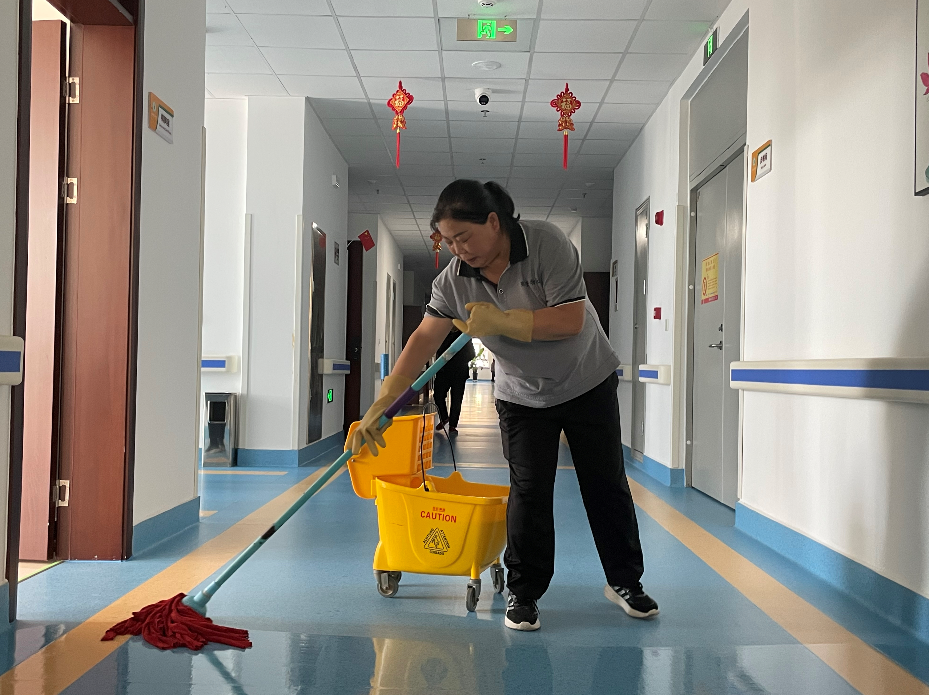 走进兴安盟社会养护院,财安物业的贴心服务体现在每一处细节之中。草坪整洁如茵,步道干净无尘,两侧养老用房窗明几净,室内家具摆放规整有序。大厅入口,保洁人员手持工具细致清扫,不放过任何卫生死角;电梯间内,“电梯使用安全须知”醒目张贴,维修员每日按时巡检,保障居住安全。“在这儿住着,比家里还舒心!地面亮得能照见人影,工作人员见了面总是笑着打招呼,啥都不用操心,真是太适合养老啦!”84岁的王桂兰老人由衷赞叹。这份质朴的认可,正是对优质服务生动的诠释。
