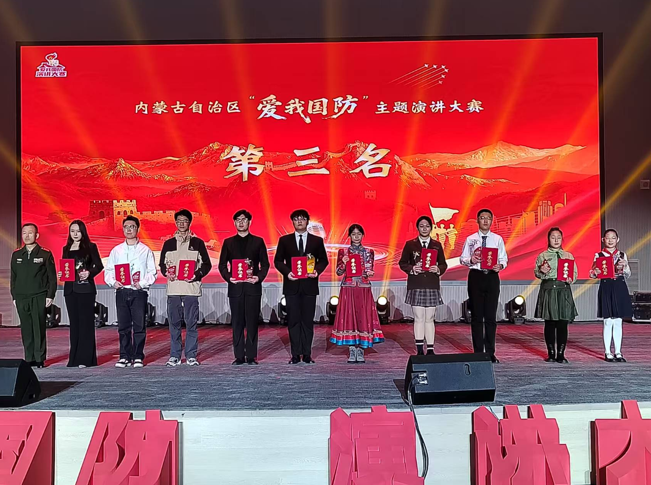 近日,由中共内蒙古自治区委员会宣传部、中共内蒙古自治区直属机关工作委员会、内蒙古自治区教育厅、内蒙古军区政治工作局联合主办的内蒙古自治区“爱我国防”主题演讲大赛优秀作品展演暨颁奖礼在内蒙古大学南校区举行。