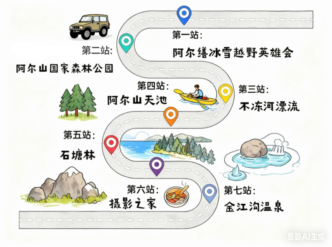 想要一场与众不同的旅行吗?那就来阿尔山吧!握紧方向盘,在无垠雪原驶出第一道轨迹;穿越朦胧水雾,于冬日河面破浪前行;漫步凝固的火山熔岩间,感受地球的褶皱。即刻出发,沉浸于这场“地球脉动·生命起源”探秘之旅!