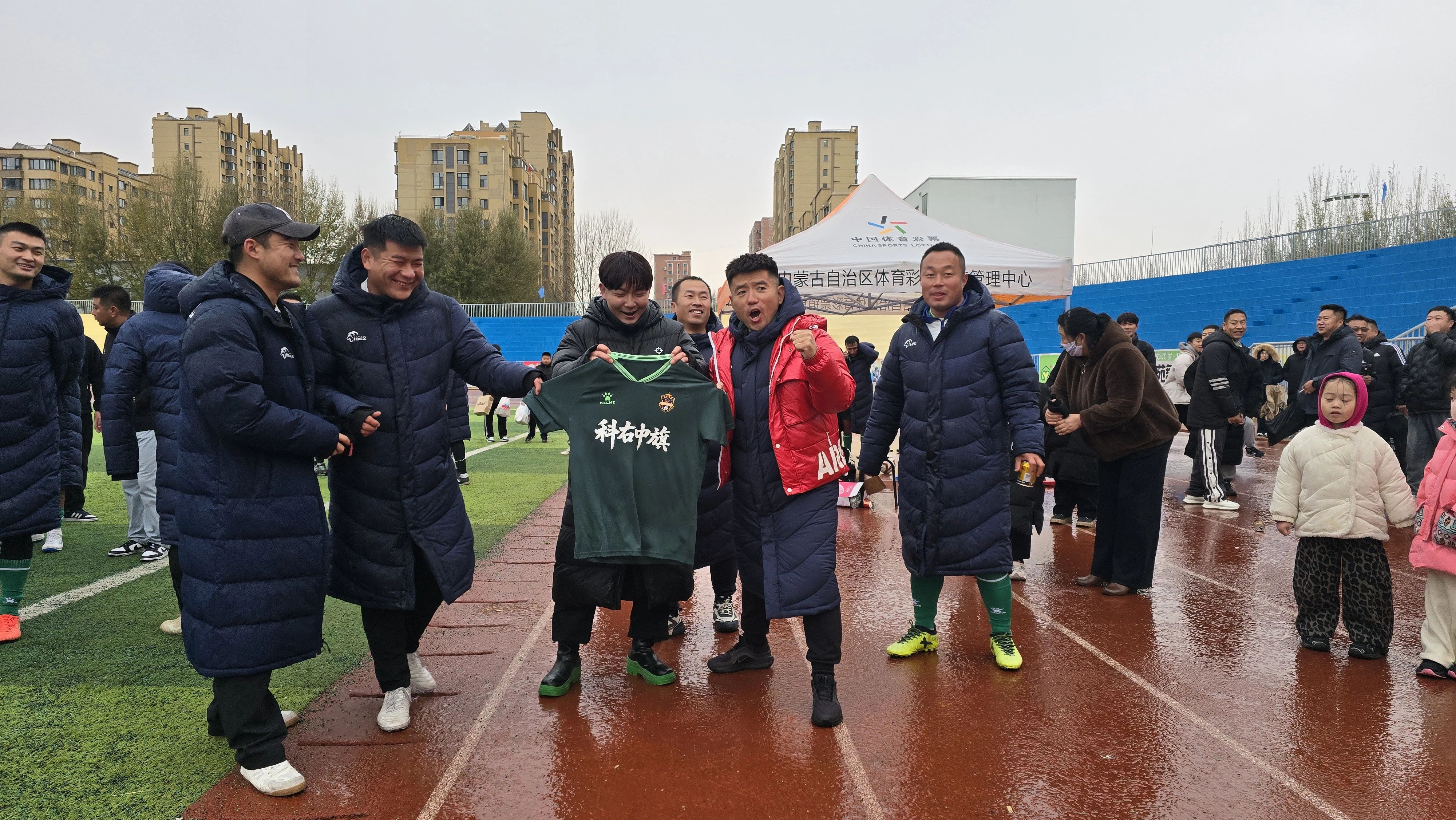终场哨响,科右中旗代表队队员在绿茵场上激动相拥,共享夺冠喜悦。现场观众以热烈的掌声与欢呼向冠军队伍致敬,熠熠生辉的奖杯见证了这场属于足球的荣耀时刻。