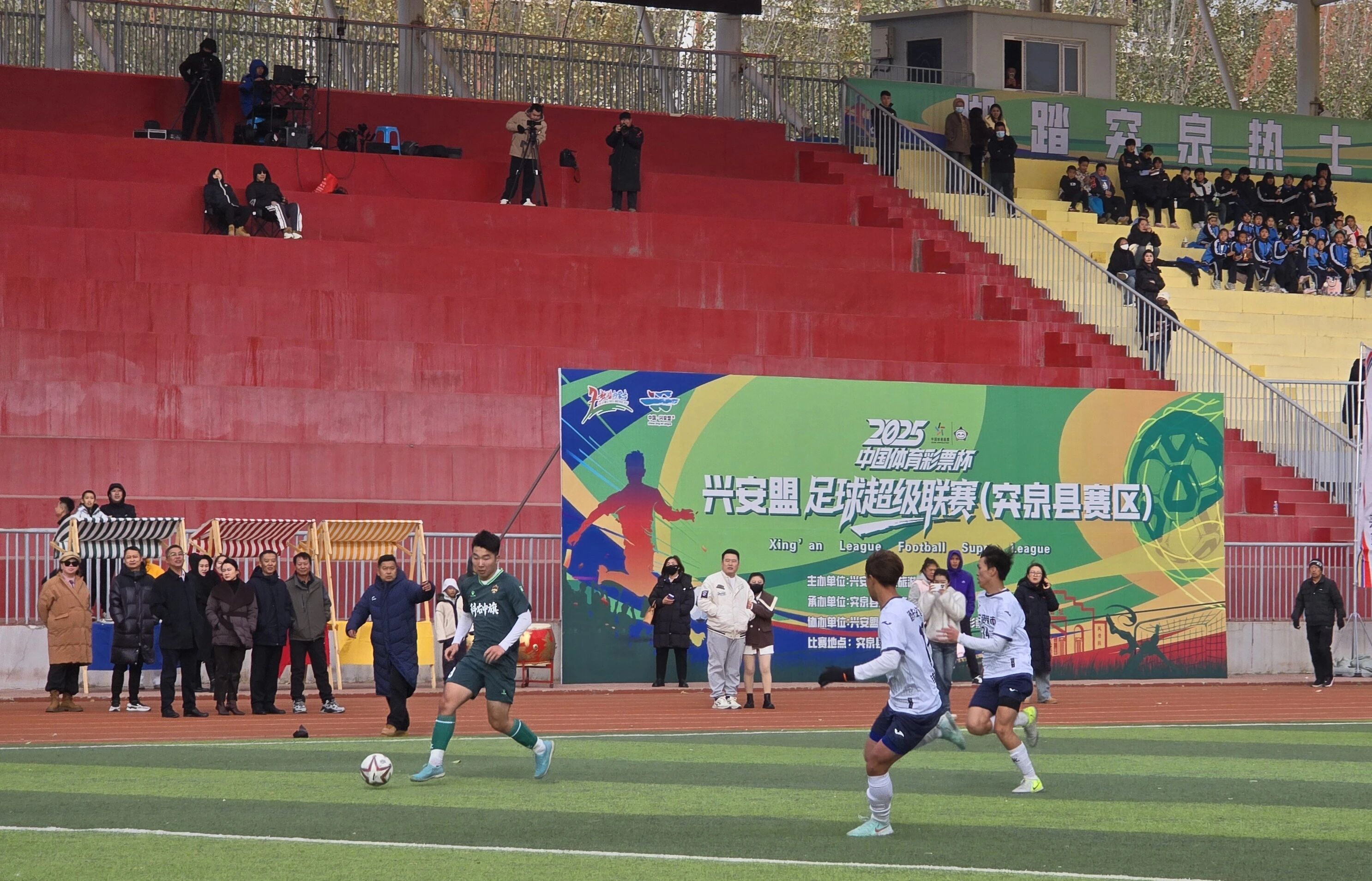 11月1日14时,2025年“中国体育彩票杯”兴安盟足球超级联赛在突泉县文体中心体育场迎来收官之战。科右中旗代表队凭借出色发挥,以3:0力克乌兰浩特市代表队,以五战全胜的骄人战绩勇夺联赛冠军。