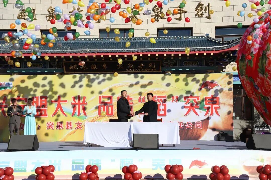 “签约成功!”11月4日,兴安盟突泉县赛银花现代农业生态园区内掌声雷动。北京惠通达行商贸有限公司与突泉县九龙乡九顶村股份经济合作社签约代表登台,共同签署合作协议,订购70万斤优质兴安盟大米,让北纬46°“寒地水稻黄金种植带”孕育的优质大米端上北京市民的餐桌。