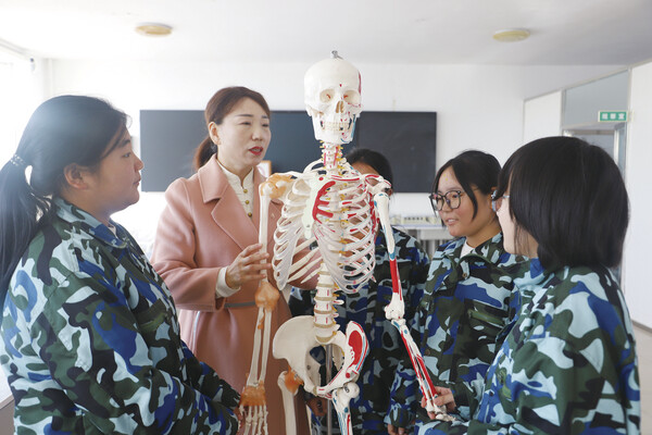 在学校护理实训室里,一股淡淡的消毒水气味中,邢永新老师正俯身于解剖模型前,她的手指轻柔地划过“神经”与“血管”的走向。这位来自兴安职业技术大学护理康养学院的专任教师,自今年9月踏上帮扶之旅起,便将《人体解剖学》的课堂变成了“传帮带”的一线阵地。“我来这里,既要帮同学们把职业技能学得更扎实,让手上的本领能对接实际需求,也想和校里的老师们深度交流,一起研究怎么让教学更贴近岗位实操。”邢老师这样阐述她的帮扶初心。