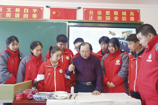 更值得一提的是,董胡宝将他正在进行的自治区“十四五”规划科研课题——骨瓷彩绘研究,直接融入了帮扶工作之中。他不仅向学生们展示课题的研究成果,更鼓励并指导有兴趣的学生参与到课题的拓展性应用研究中来。“职业教育不仅要传授技能,更要培养学生的审美素养和文化自信。”董胡宝表示,“我的课题研究在这里找到了新的实践土壤。希望通过我的努力,能让学生们认识到自己民族文化的价值,并学会用现代的语言去传承和创新,这才是‘授人以渔’。”