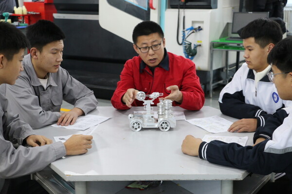 在教学中,李云海突破传统教学模式束缚,率先探索“岗课赛证”一体化融合教学模式,首创“项目一贯制”人才培养体系,让学生们在课堂上就能接触到企业真实项目。他自主研发的“数控加工虚拟车间”系统,让原本抽象的高端设备操作和复杂加工工艺变得直观易懂。“李老师常说,职业教育就要‘手脑并用、知行合一’,不能光在课本上打转。”正在操作数控设备的学生柴野说。