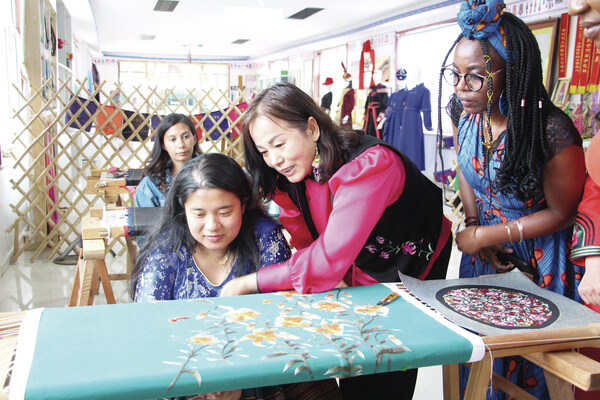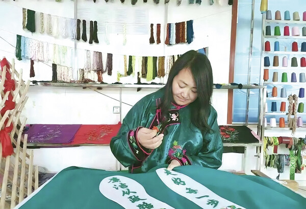 札萨克图刺绣已拓展出绣花、贴花、机绣、雕绣、打子绣、混合绣等几十项技法,表现形式也从传统走向多元、开放与时尚。“绣娘们设计作品时,以传统服饰为根基,以现实生活为蓝本,融合双面绣、书法、中国画等元素,用一针一线绣制新生活。”秀云说,她爱家乡,更爱萨日朗花鲜艳而不娇弱的品性,“我要带着姐妹们,让札萨克图刺绣像萨日朗一样,开得红红火火。”