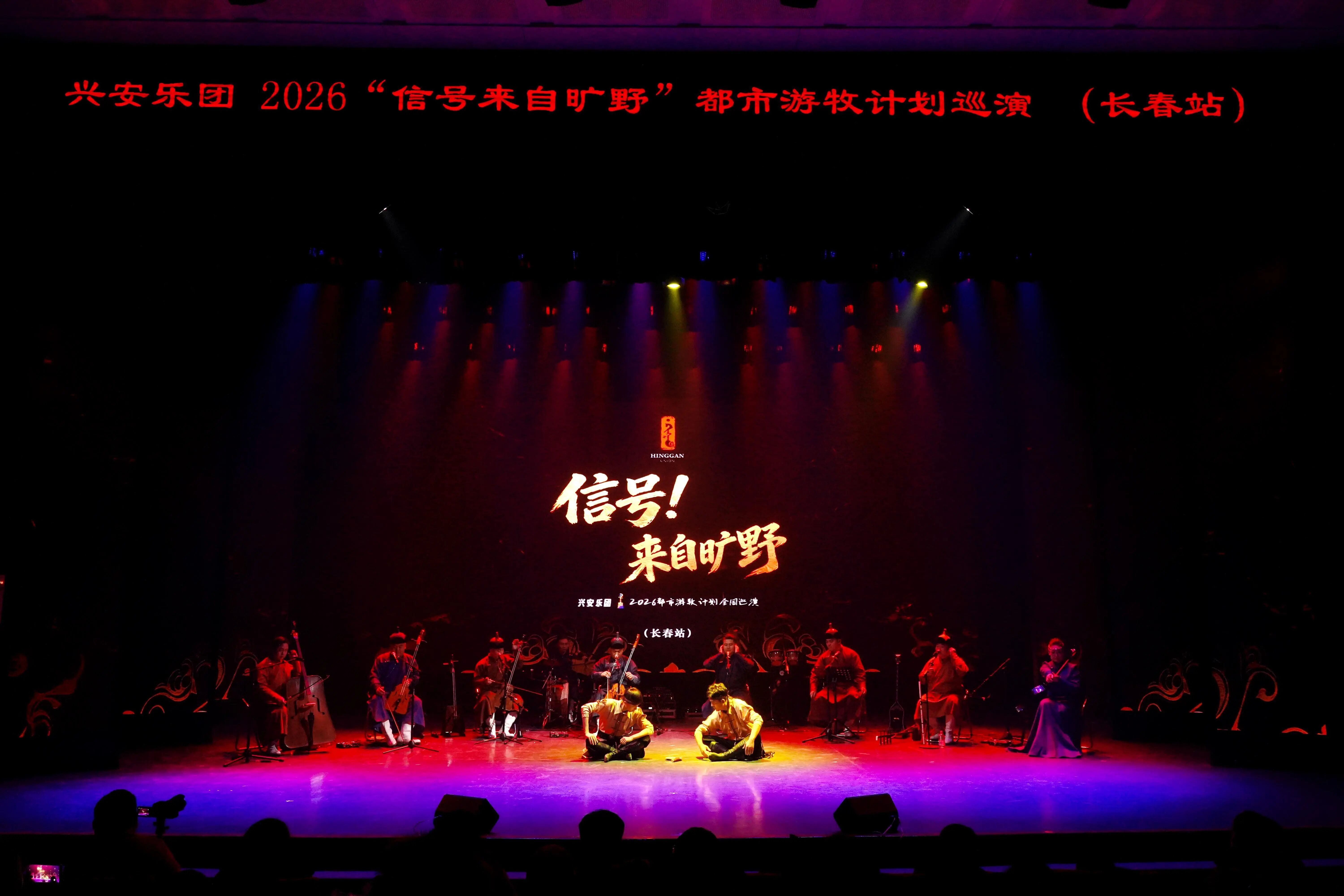 12月26日,兴安乐团2026“信号!来自旷野”都市游牧计划全国巡演(长春站)在吉林省桃李梅大剧院倾情开演。这场演出,既是草原文化与关东风情的激情碰撞,更是兴安盟乌兰牧骑市场化运营改革后的首场商业演出,为蒙吉两地文化交流谱写出崭新篇章。