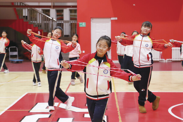 在学校体育馆里,花样跳绳社团正呈现一场“绳上盛宴”:单人跳得轻快,双人跳得默契,集体长绳穿梭得热闹,引得围观同学阵阵欢呼。在水墨童心社的教室里则墨香氤氲,学生们手握毛笔,在宣纸上勾勒山水,点染花鸟,一笔一画尽显专注。“我们学校从2018年起就每周设一天‘无作业日’,不布置书面作业,不代表让学生无所事事。”乌兰浩特市合展小学教务处主任代行佳介绍,学校精心设计了形式多样、内容丰富的社团课程,让学生在自主探索与兴趣拓展中收获成长。