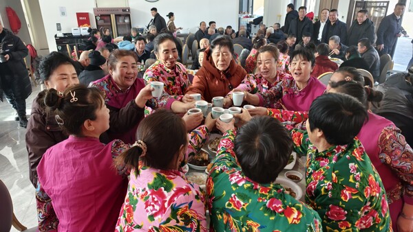中午时分,幸福食堂里香气扑鼻,百家宴开席了。100多户回迁家庭就像变魔术一样,端出了自家的拿手菜,一道道色香味俱佳的菜肴摆满了张张圆桌。大家围坐在一起,一边品尝着美食,一边聊着家常,欢声笑语回荡在整个食堂。村民刘长臣一边夹菜一边笑着说:“回迁后,我们住上了宽敞的新房,邻里之间的关系也更亲近了。大家聚在一起吃饭、聊天,这日子真是越过越有盼头!”