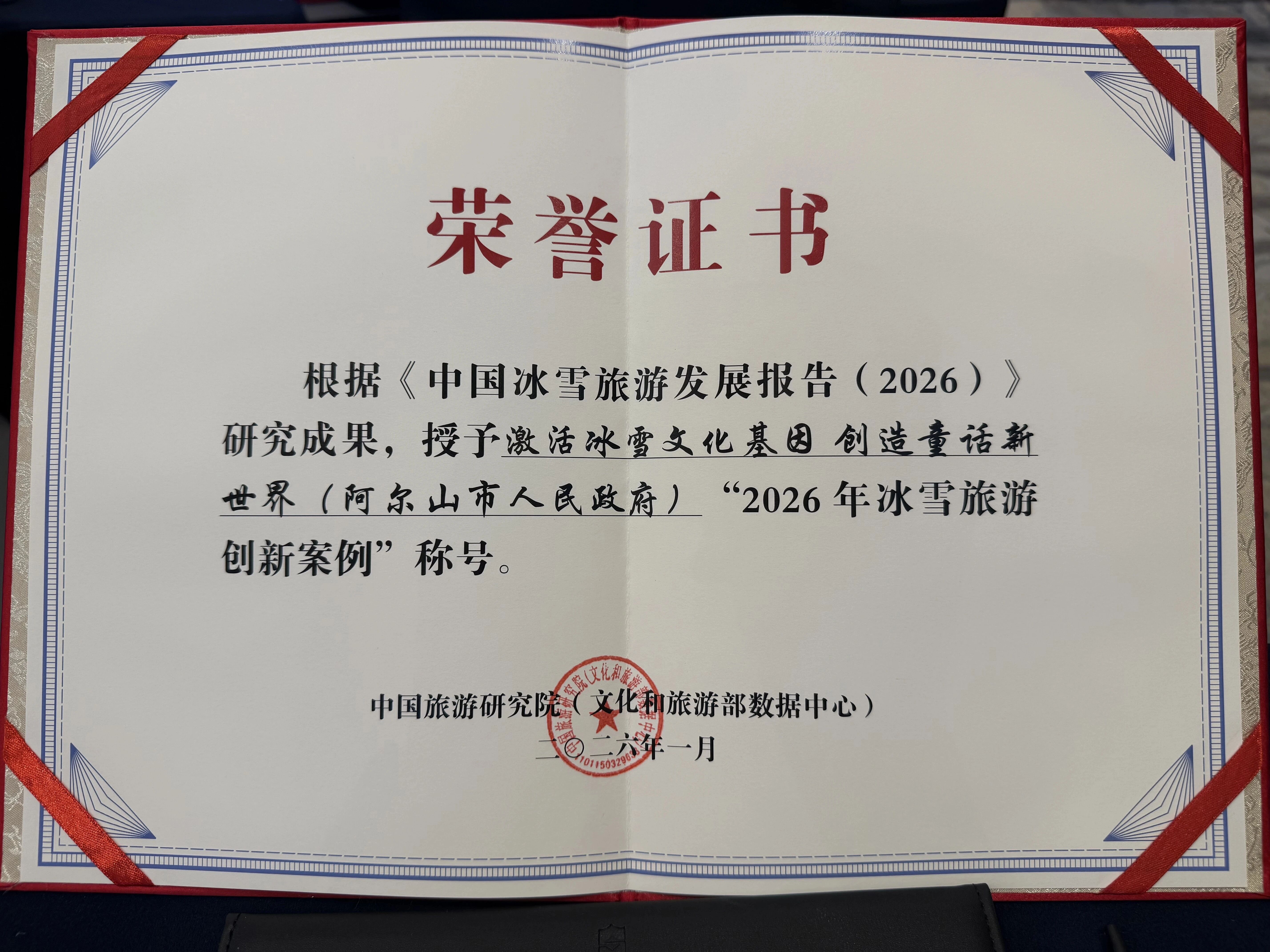 近日,在哈尔滨举办的“2026冰雪旅游发展大会”上,阿尔山市“激活冰雪文化基因 创造童话新世界”实践案例成功入选全国仅十席的“冰雪旅游创新案例”,成为内蒙古自治区唯一获此殊荣的城市。