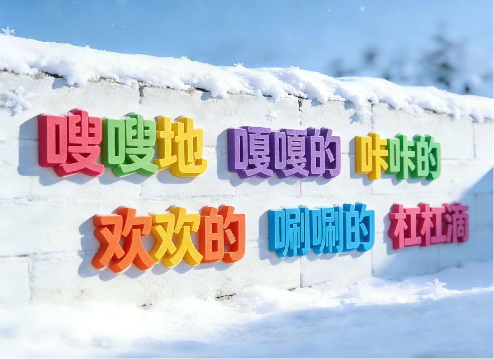 此外,东北话艺术字墙、“2026‘杏’好相遇 ‘鱼’你同行”雪雕更是朋友圈晒图利器。