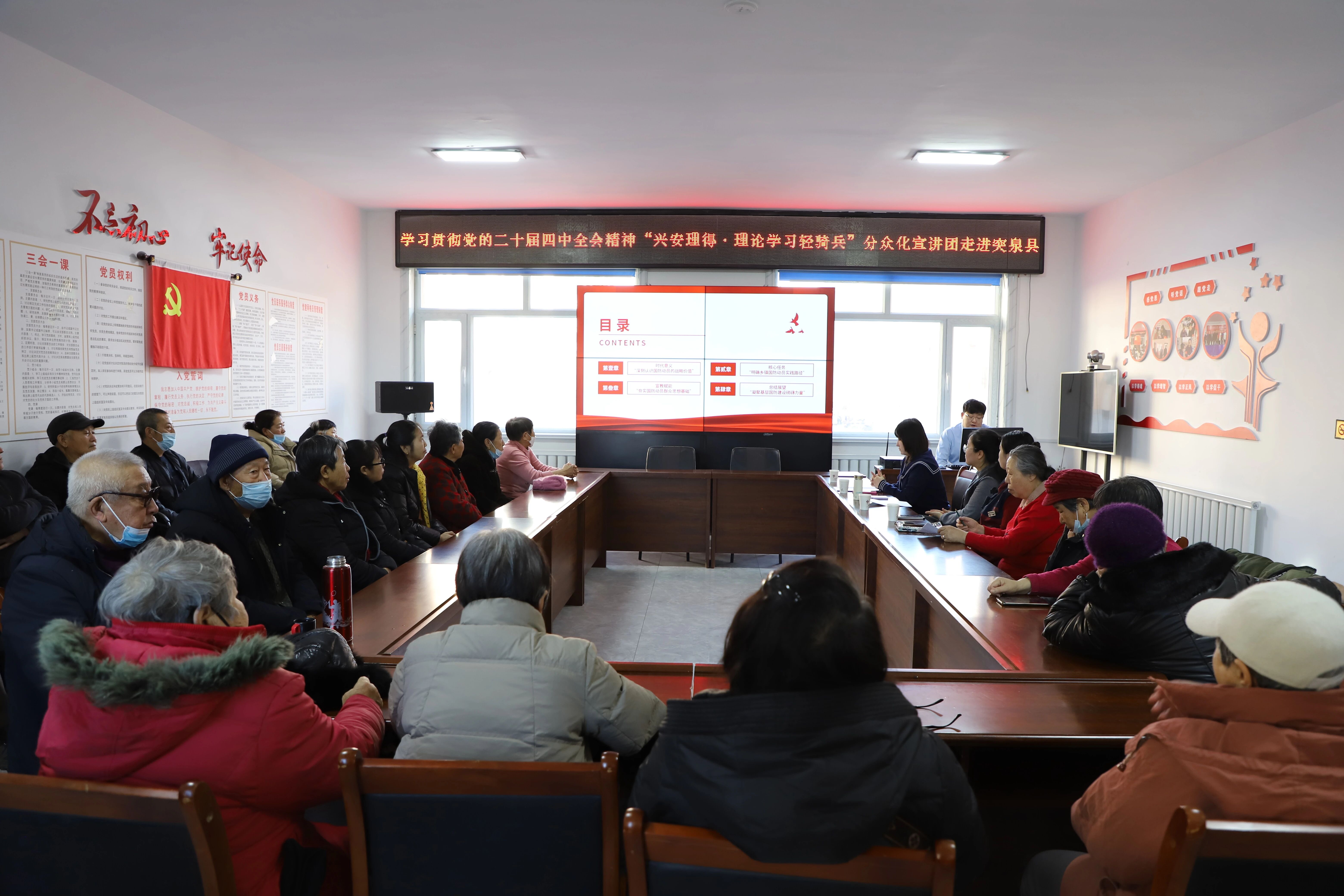为持续推动党的二十届四中全会精神深入基层、深入人心,近日,“兴安理得·理论学习轻骑兵”分众化宣讲团走进突泉县太平乡五三村和团结社区,将全会精神的丰富内涵和实践要求,送到了社区百姓和乡村干部群众身边。