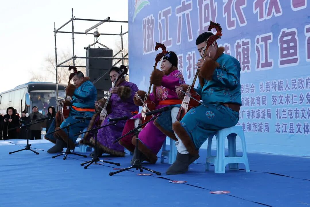“开集!”1月11日,嘹亮号子划破扎赉特旗努文木仁乡杏花村的冬日晴空,嫩江六域农牧民冰雪运动会暨扎赉特旗江鱼市集欢乐启幕。扎赉特旗、扎兰屯市、齐齐哈尔市、龙江县、泰来县、镇赉县农牧民欢聚一堂,共赴这场冰雪与烟火交织的盛会。