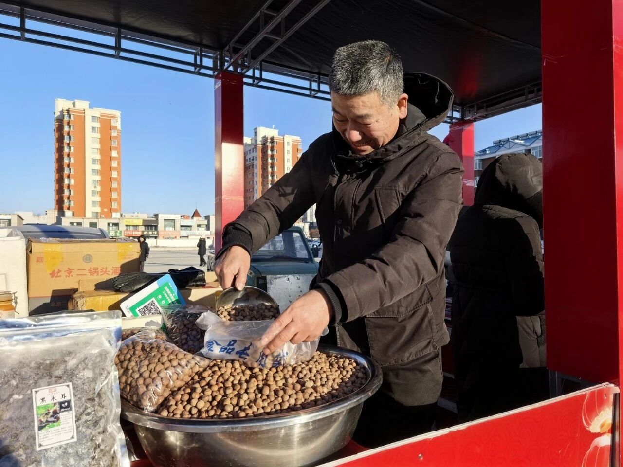 “以前买年货要跑好几个地方,现在在‘家门口’就能一站式购齐,都是咱本地的好东西!”居民王丽光穿梭在展位间,手里提着满满当当的“战利品”。“这次买了不少奶制品和木耳,物美价廉。”王丽光兴高采烈地说。