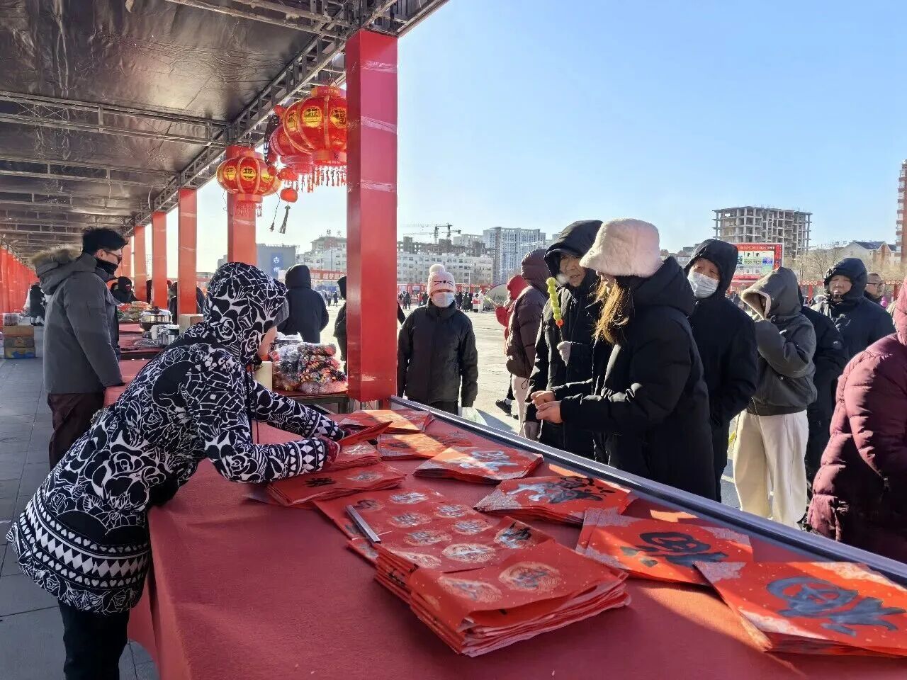 年味在互动中愈发浓厚。书法爱好者们挥毫泼墨,笔走龙蛇间,一副副寓意吉祥的春联和福字新鲜出炉,免费送到群众手中。“这样的手写春联才有年味儿,贴在家里特别有意义。”拿到春联的居民们纷纷拍照打卡。